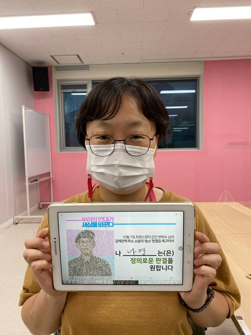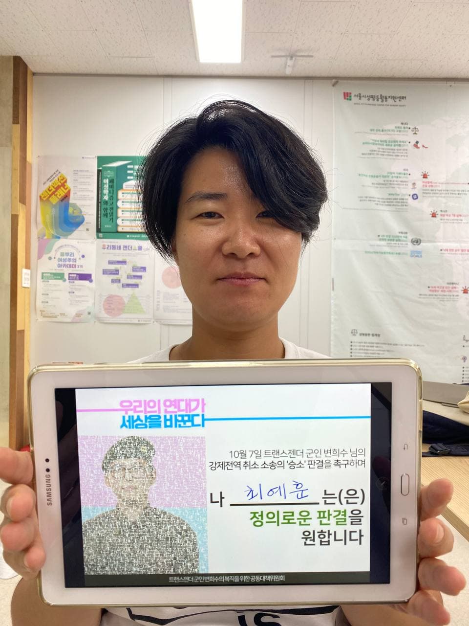 [함께 해요] 트랜스젠더 군인 변희수 님의 강제전역 취소소송의 승소 촉구 인증샷